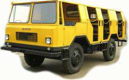 Машина транспортная шахтная МТЗ "БЕЛАРУС МТ-353М2" Машина транспортная шахтная БЕЛАРУС МТ-353М2 предназначена для перевозки людей по горизонтальным и наклонным (до 15º) горным выработкам арочного типа калийных рудников. Масса и габаритные размеры машины транспортной шахтной БЕЛАРУС МТ-353М2: - масса конструкционная - 4100 кг; - масса эксплуатационная - 4300 кг; - масса максимально допустимая (полная) - 6100 кг; - база - 2600 мм; - габаритные размеры: длина - 5650 мм, ширина - 2220 мм, высота - 2150 мм; - грузоподъемность - 1800 кгс.